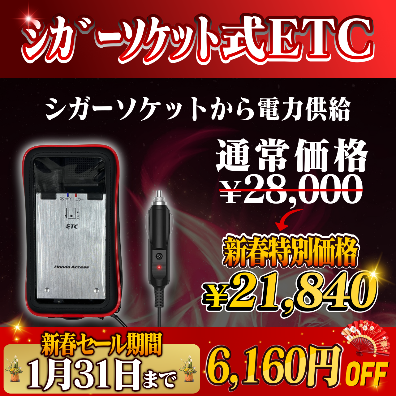 【新春セール!通常価格より6160円OFF】【シガーソケット式バイク用ポータブルETC車載器】今月ラスト2点
