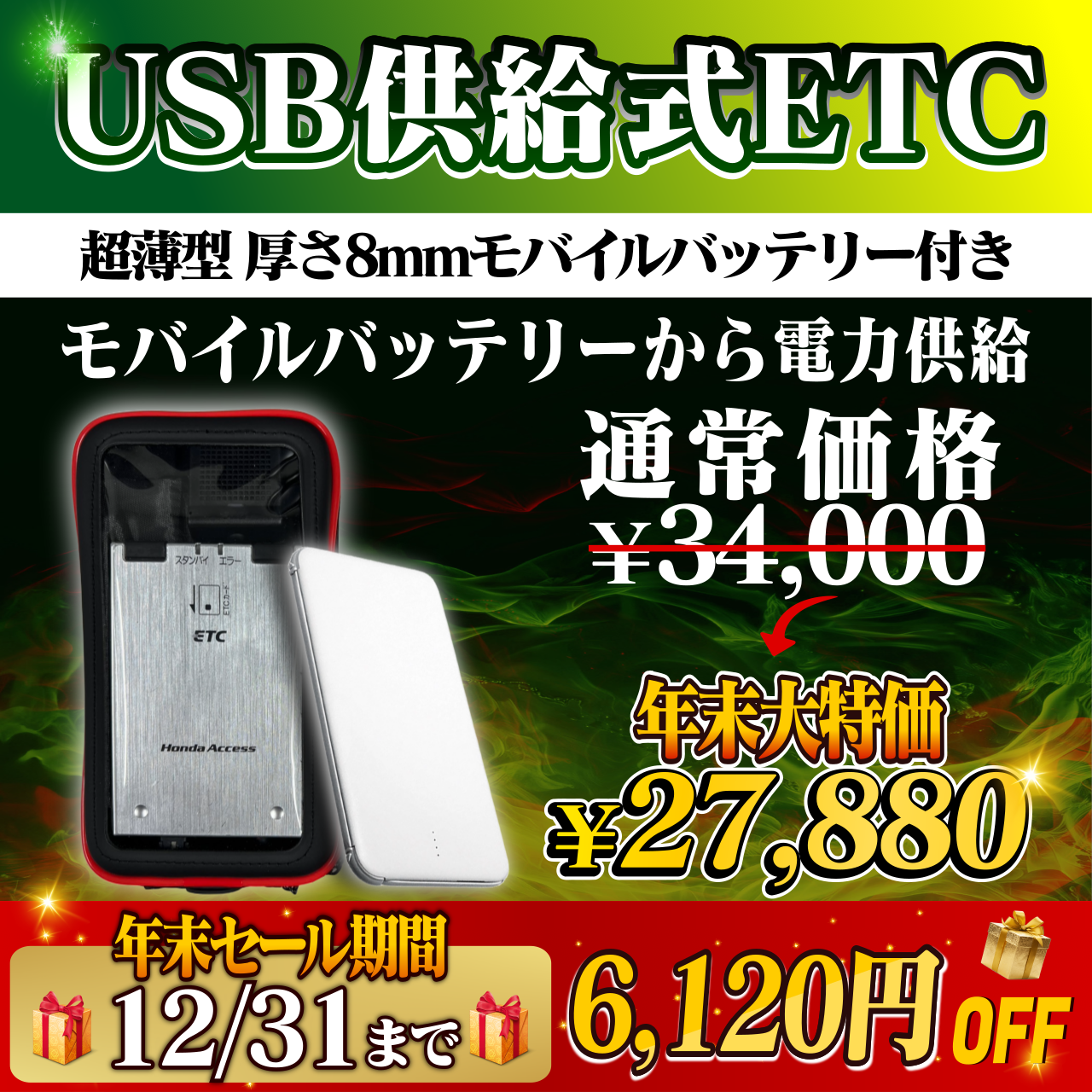 【12月31日まで!通常価格より6160円OFF】【超薄型モバイルバッテリー付きポータブルバイクETC車載器】【USBタイプA接続可能】今月ラスト5点